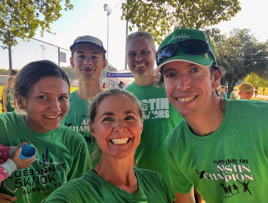 When she isn't running and coaching, Joy manages a full household of seven kids (and husband, Jay, too)! Though three (Austin, Grace, and Will) are now adults living independently, it still feels like quite the busy household. Joy is co-Race Director for the Texas Independence Relay, and Joy, Jay, and family are members at Hill Country Bible Church in Cedar Park.